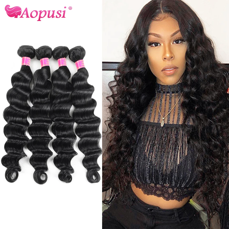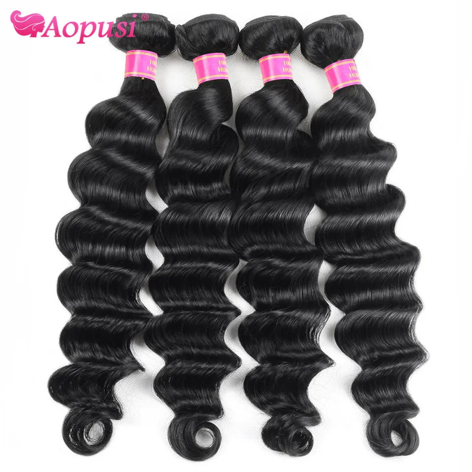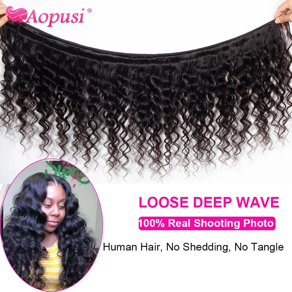 100% человеческие волосы Aopusi, пряди свободных волос с глубокой волной, перуанские пряди, естественный цвет, необработанные человеческие волосы с двойным рисунком