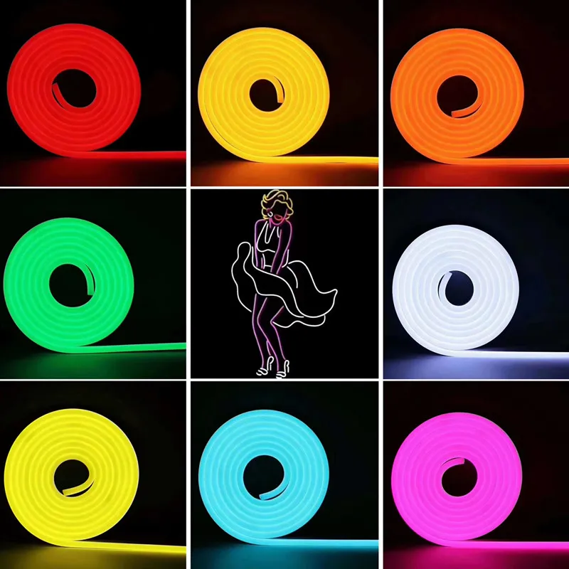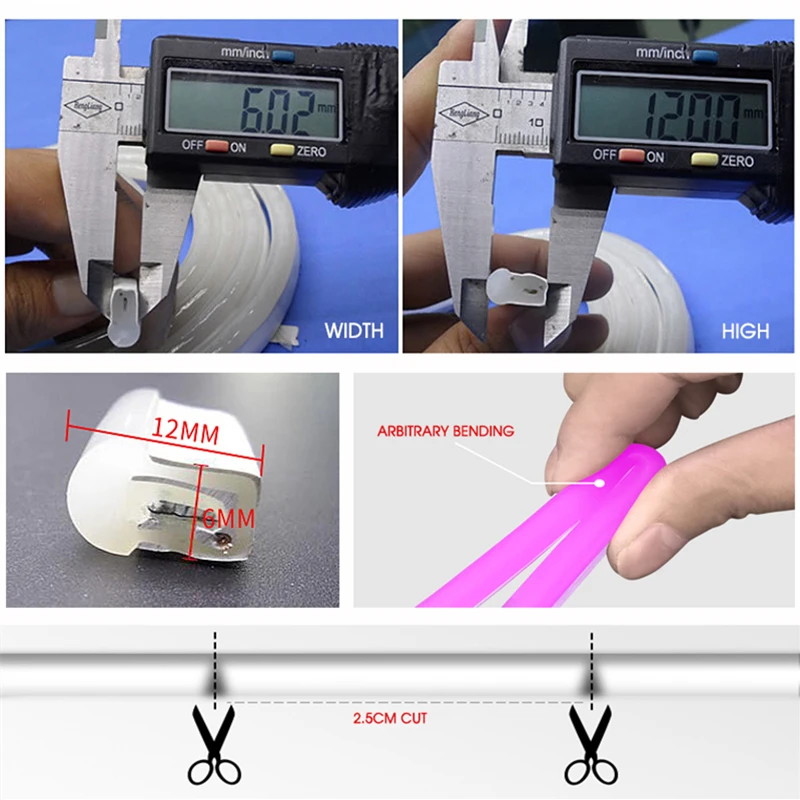 12 В светодиодная неоновая полоса световая вывеска веревка гибкая лента мягкая силиконовая трубка Водонепроницаемая 2835 SMD белый желтый красный зеленый синий розовый