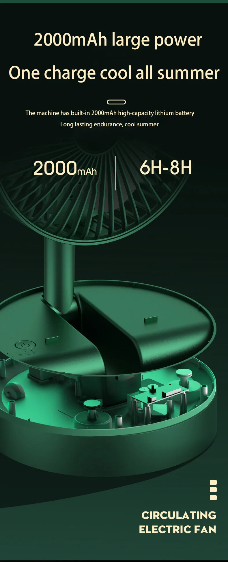 Портативный USB-вентилятор, перезаряжаемый мини-вентилятор, складной электрический вентилятор с регулируемой высотой, отлично подходит для офиса, дома, уличной камеры