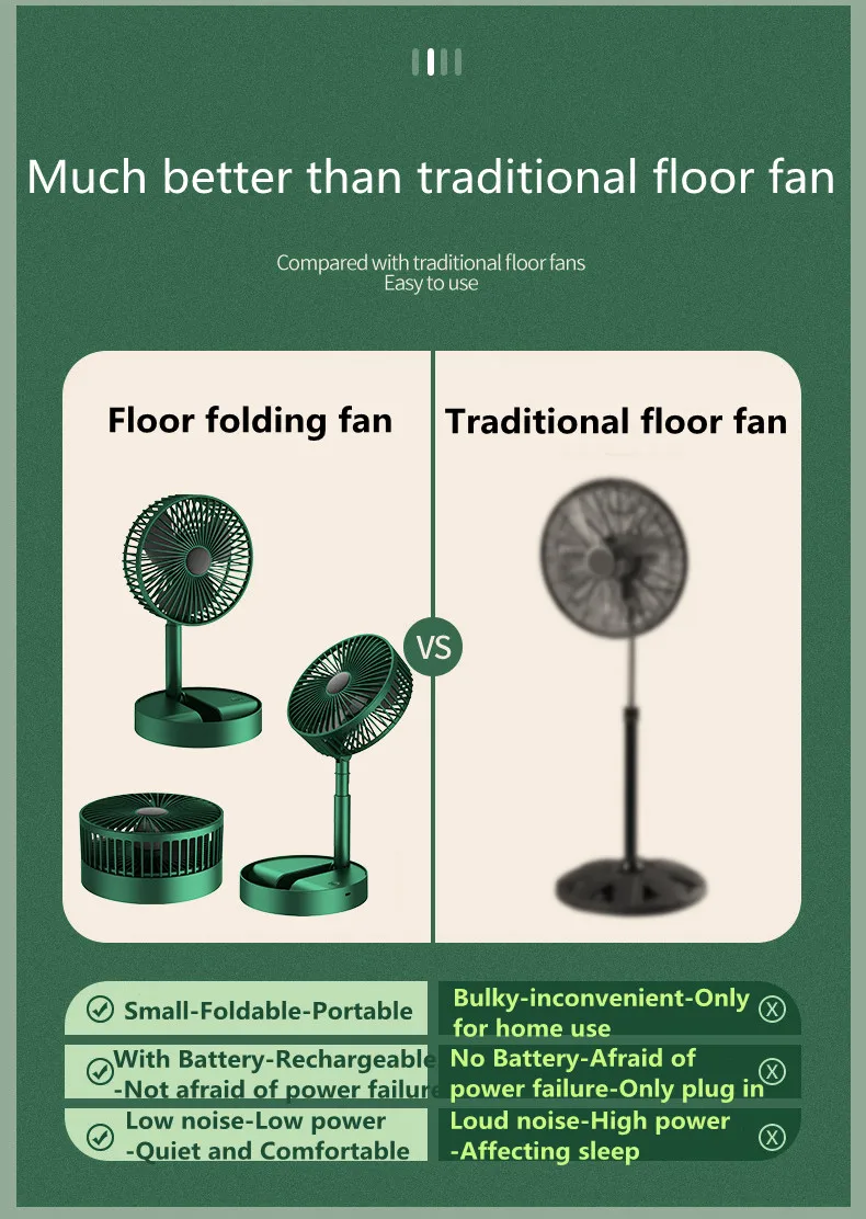 Складной телескопический вентилятор с вибрирующей головкой, портати...