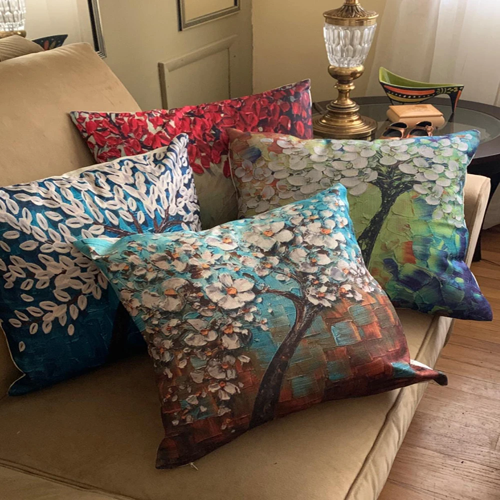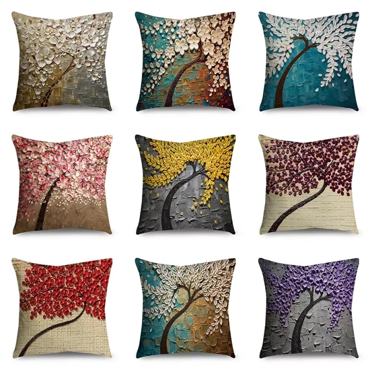 Подушка для подушки с рисунком масляной краской 45x45 Цветочное дер...