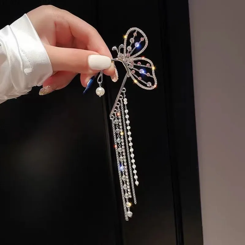 Модные длинные висячие серьги с кисточками для женщин, серьги в форме бабочки, висячие серьги с кристаллами, трендовые ювелирные изделия 2021