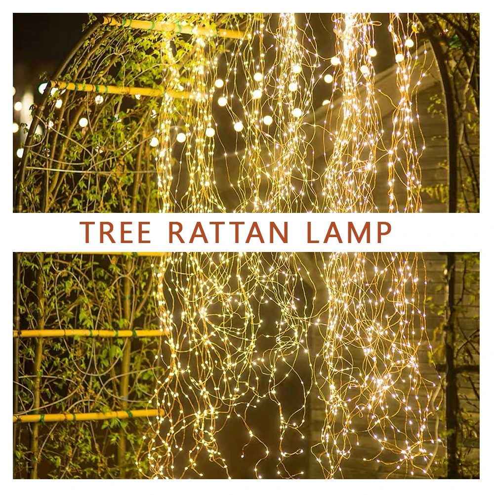 Светодиодная гирлянда из медной проволоки на солнечной энергии, осветительная цепочка в виде водопада, Сказочная Гирлянда для украшения свадьбы, Рождества, праздника