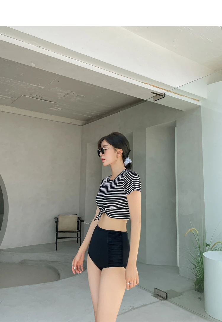 Женский комплект бикини со средней талией, купальник с коротким рук...