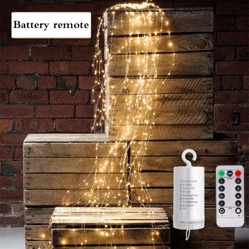Светодиодная гирлянда из медной проволоки с дистанционным управлением от батареи, аналогичная светильнику водопада, Сказочная Гирлянда для украшения свадьбы, Рождества, праздника
