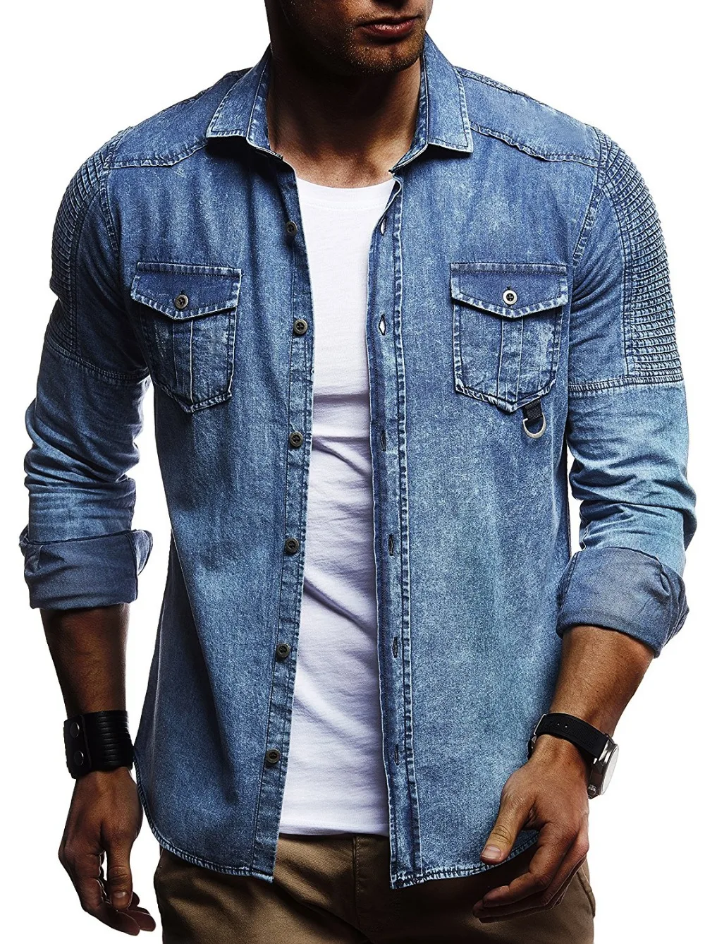 Рубашка мужская джинсовая в повседневном стиле, хлопковая рубашка с...
