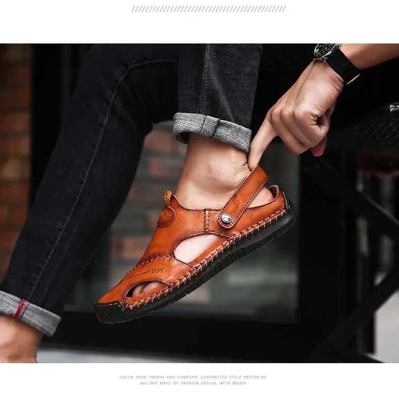Сандалии мужские из натуральной кожи, Классическая мягкая дышащая о...