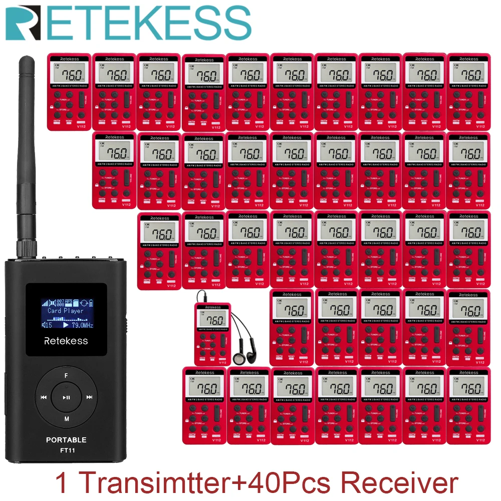 RETEKESS FT11 + 40 шт. V112 система гида беспроводной аудио микрофон система для церковной конференции синхронного перевода