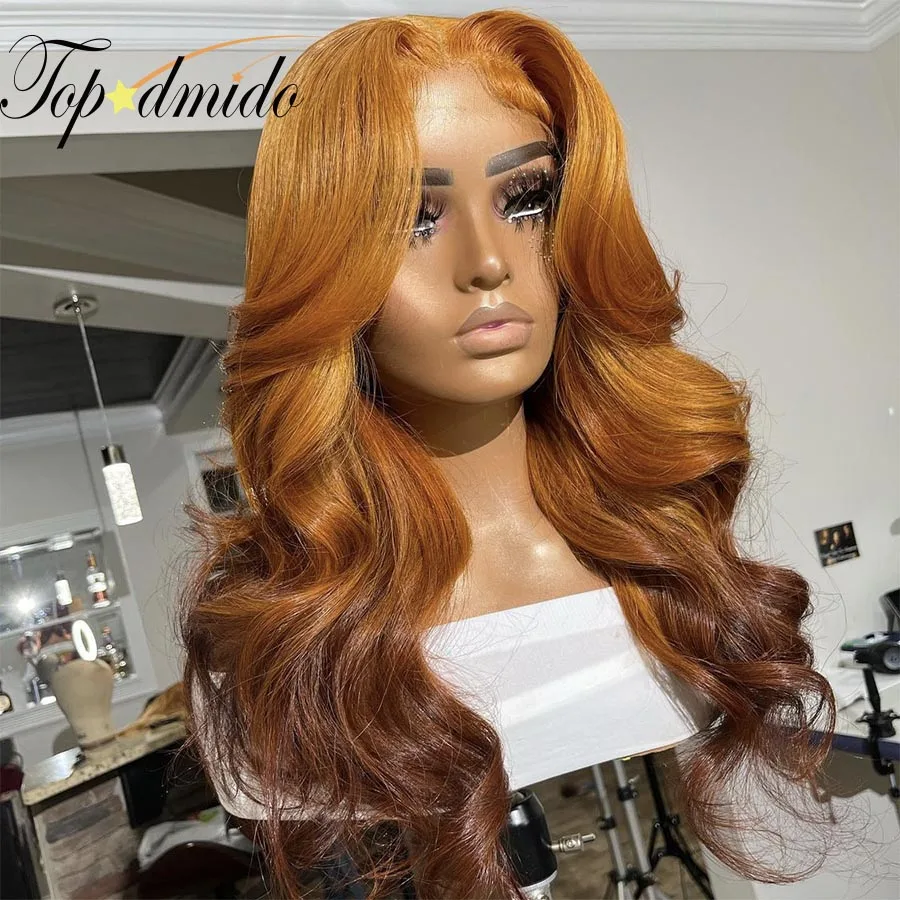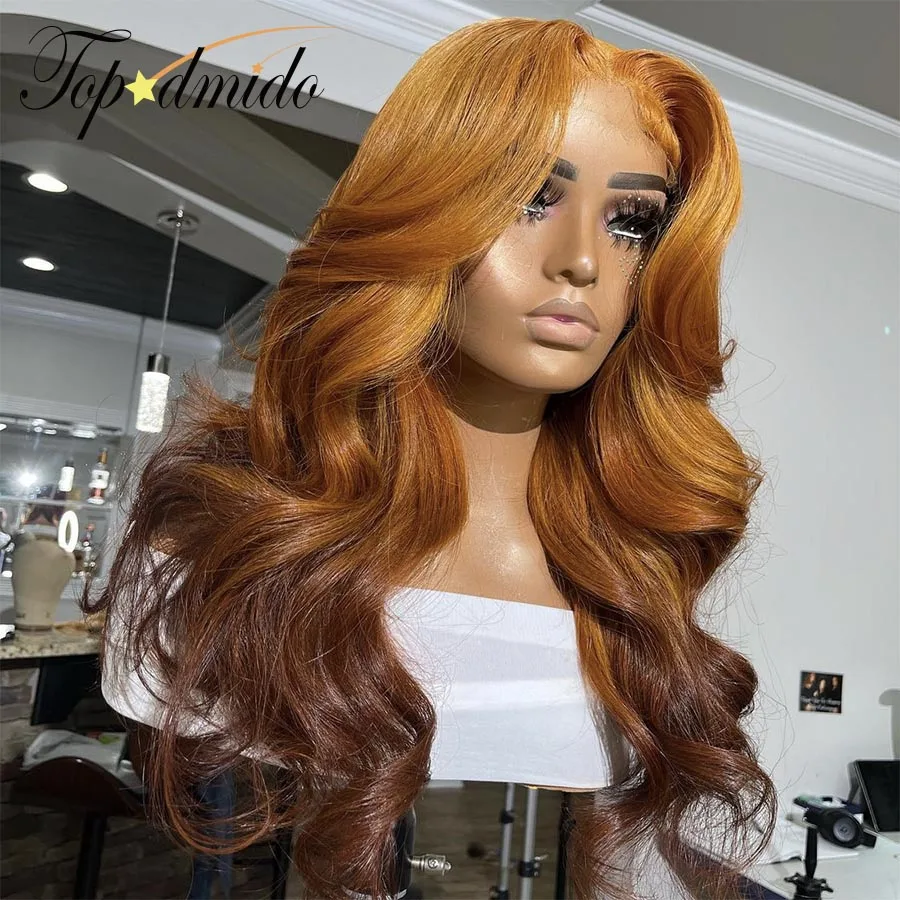 TOPODMIDO Омбре имбирный коричневый цвет кружевные передние парики с средней частью перуанские волосы Remy 4x4 парик на сетке 13x 6 парики на сетке спереди