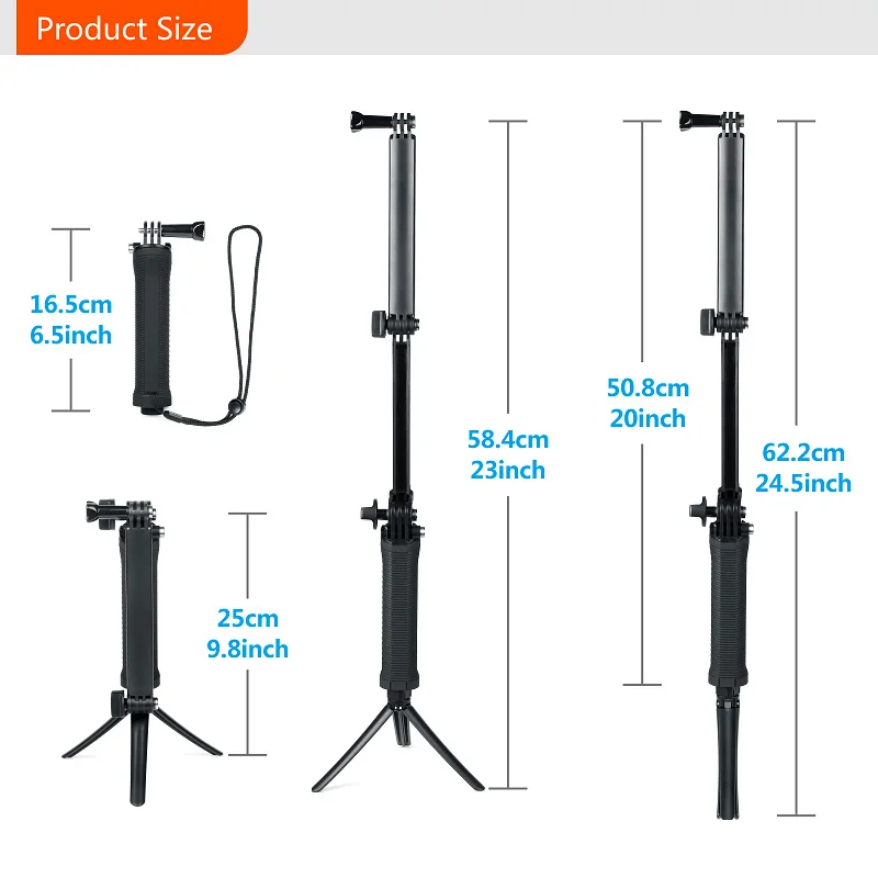 1,3-в-одном дизайн: может использоваться как рукоятка для камеры, выдвижная ножка или штатив для ультра универсальность и различные снимки.
