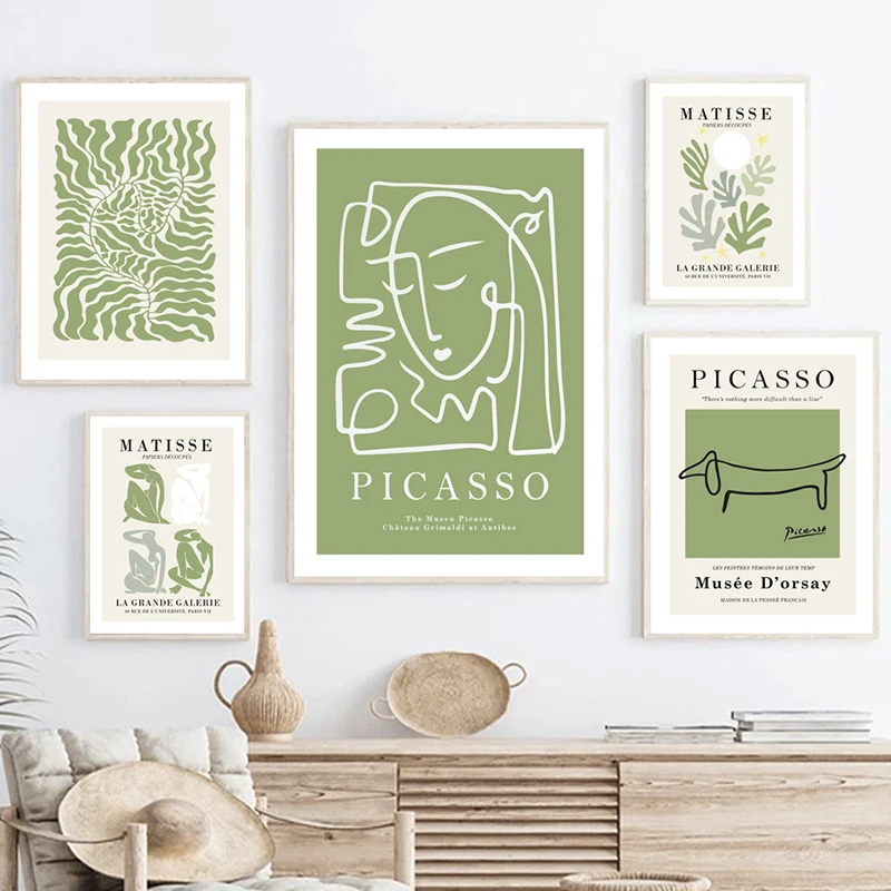 Постеры и принты Green Matisse Picasso с вырезами, настенные картины в скандинавском стиле для украшения гостиной