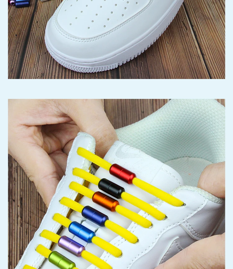 Шнурки эластичные полукруглые, без завязывания, с металлическим зам...