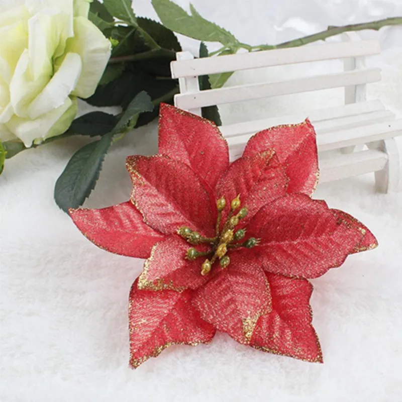 Искусственные цветы для украшения рождественской елки, 13 см, 10 шт.