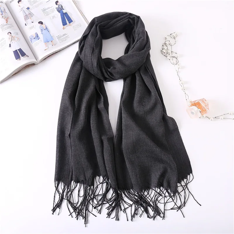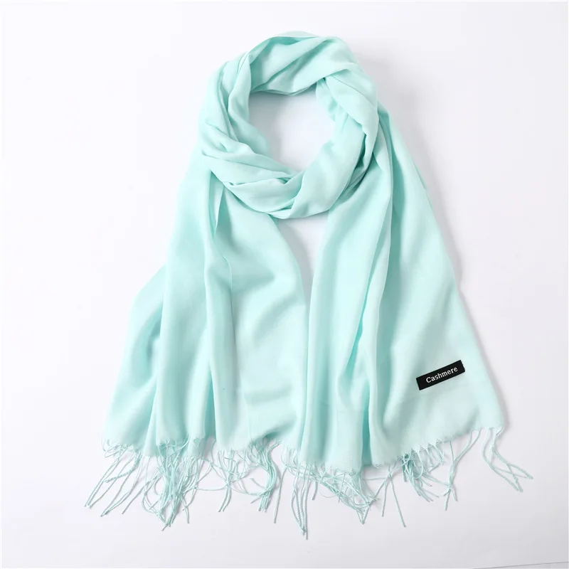 2021 модный однотонный женский шарф зимние теплые длинные шали и палантины хиджаб шарфы для женщин кашемировая Пашмина с кисточками