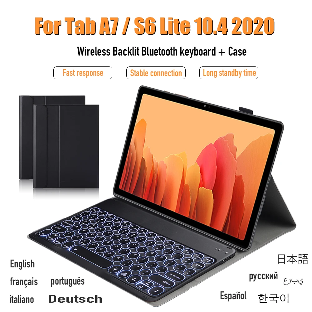 Для Samsung Galaxy Tab A7 S6 Lite 10,4 дюйма 2020 дюйма беспроводная клавиатура с подсветкой чехол с английской русской испанской французской португальской раскладкой
