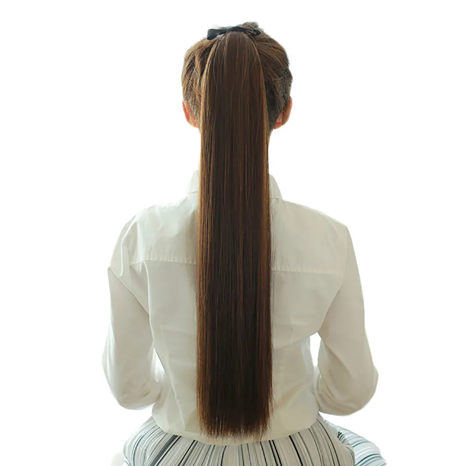 Длинные шелковистые прямые Конские хвосты на зажиме, синтетический ...