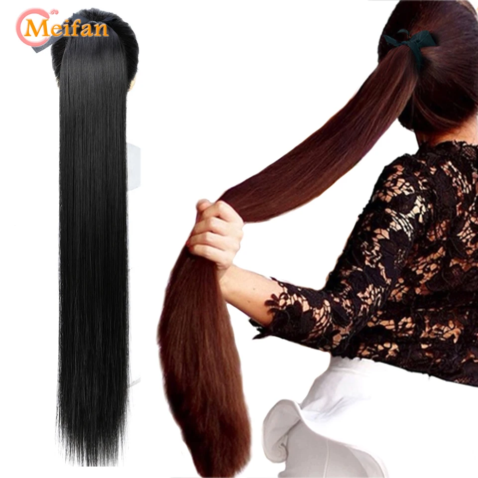MEIFAN 5 размеров длинные прямые ленты с кулиской хвост с зажимом для конского хвоста удлинители волос Синтетические аксессуары для волос