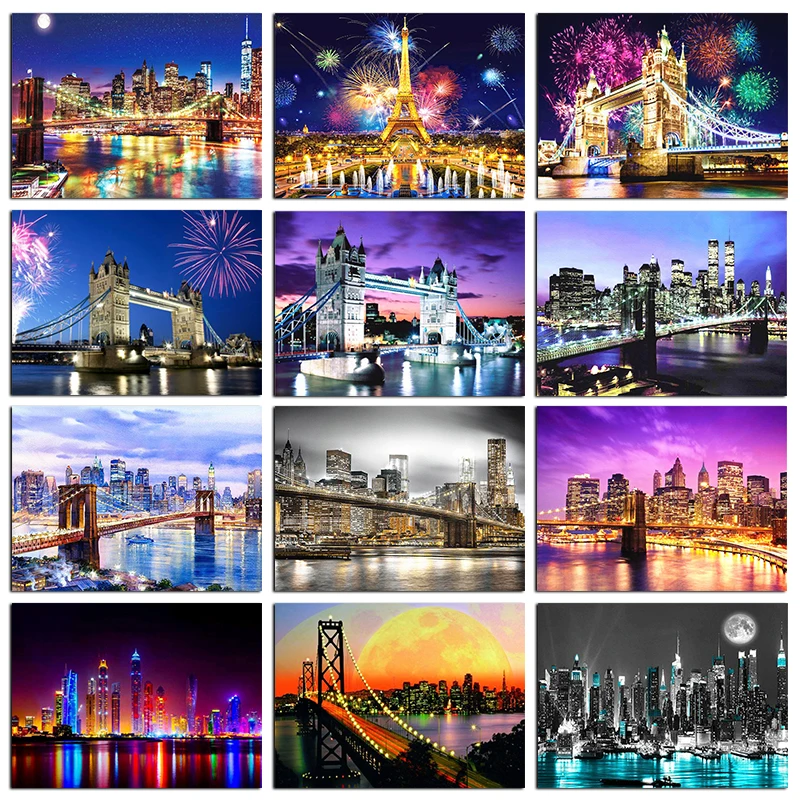 5D алмазная живопись с квадратом Стразы, городская башня, алмазная ...