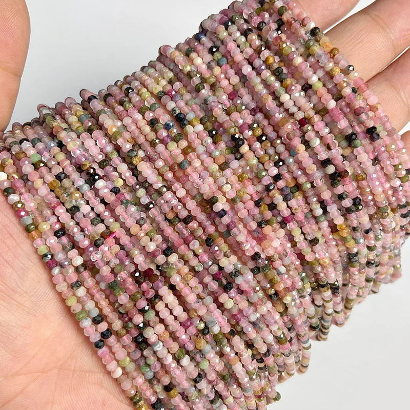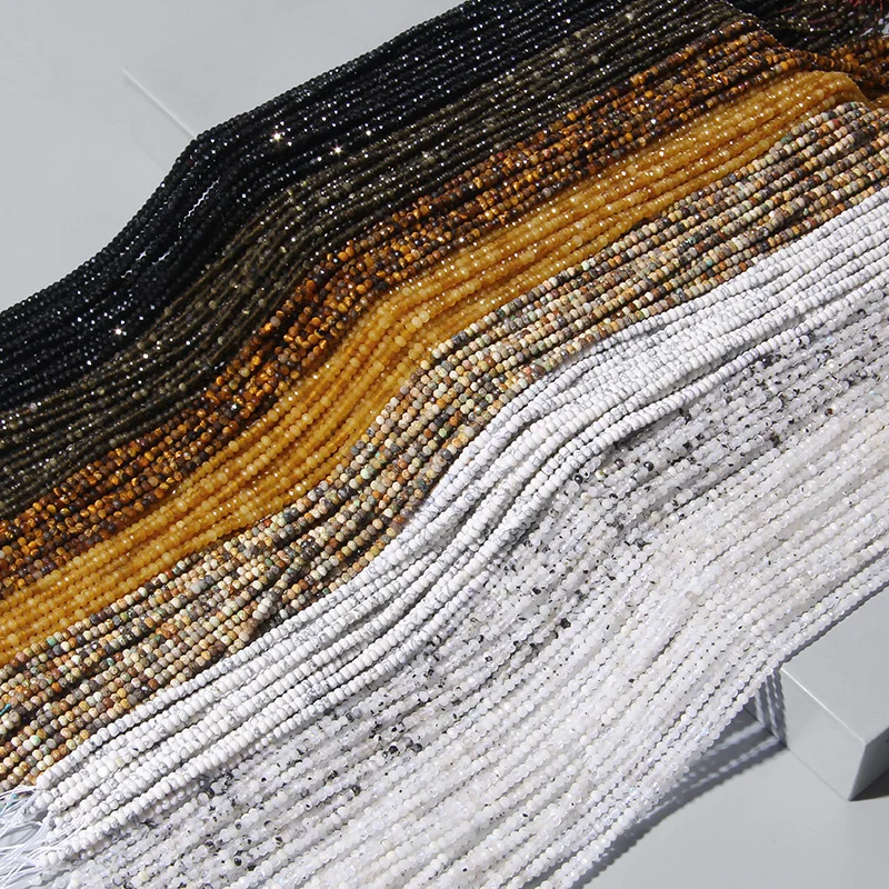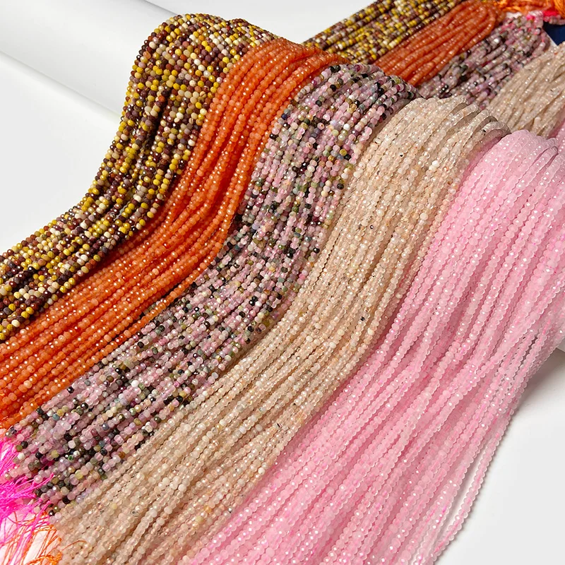 Граненые бусины с мелкими драгоценными камнями, круглые бусины из н...