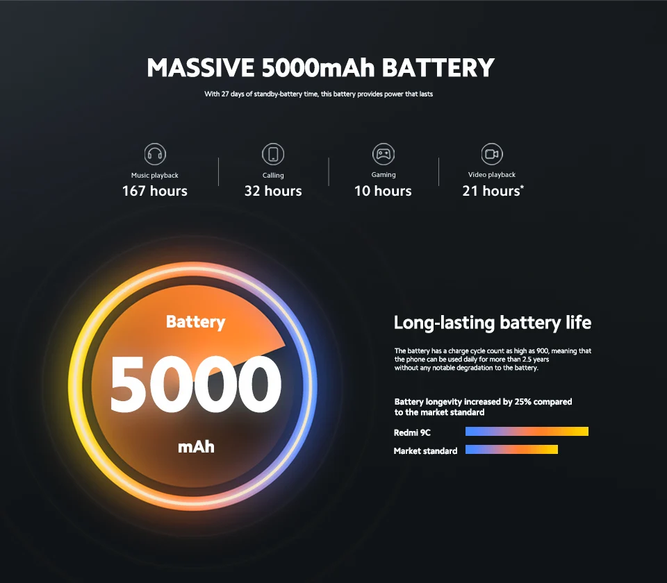 Смартфон Xiaomi Redmi 9C, 3264128 ГБ, задняя камера 13 МП, 5000 мАч