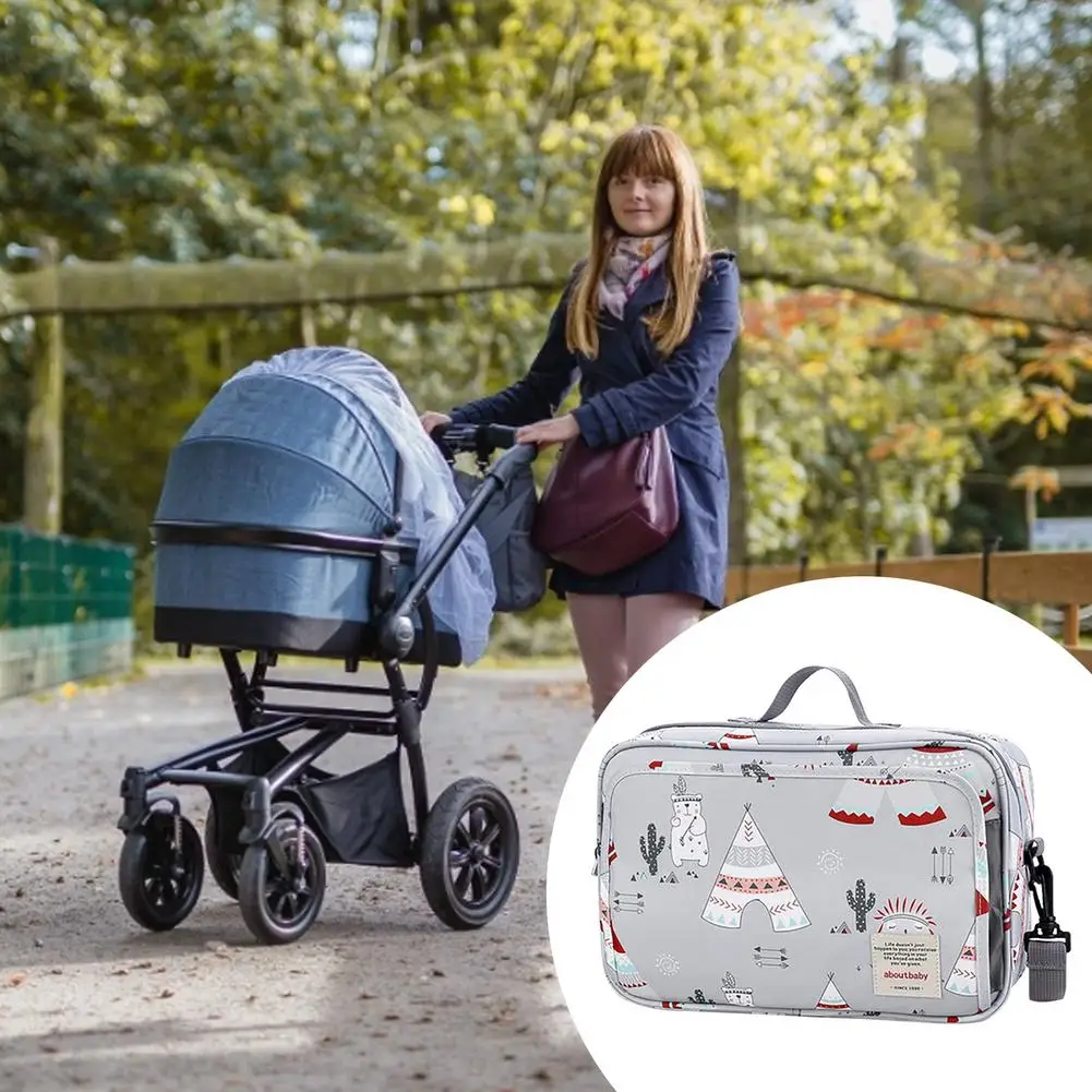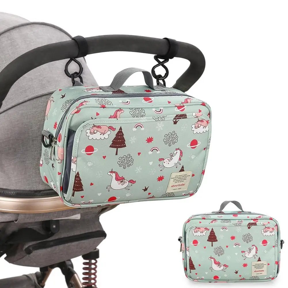 Органайзер для детской коляски, многофункциональная маленькая сумка для подгузников с изолированным держателем для чашек, с большим пространством, с салфетками, с ремнем на плечо