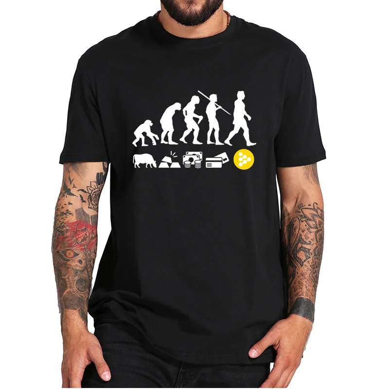 Хлопковая футболка для криптовалюты, эволюция денег, свисборг, Койн, XRP, Кардано, догкоин, полкадт, Биткоин, iExec, Элронд