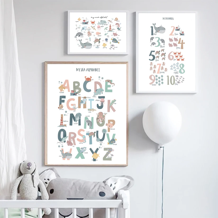 Алфавит с цифрами в стиле бохо, жираф, альпака, медведь, настенная ...