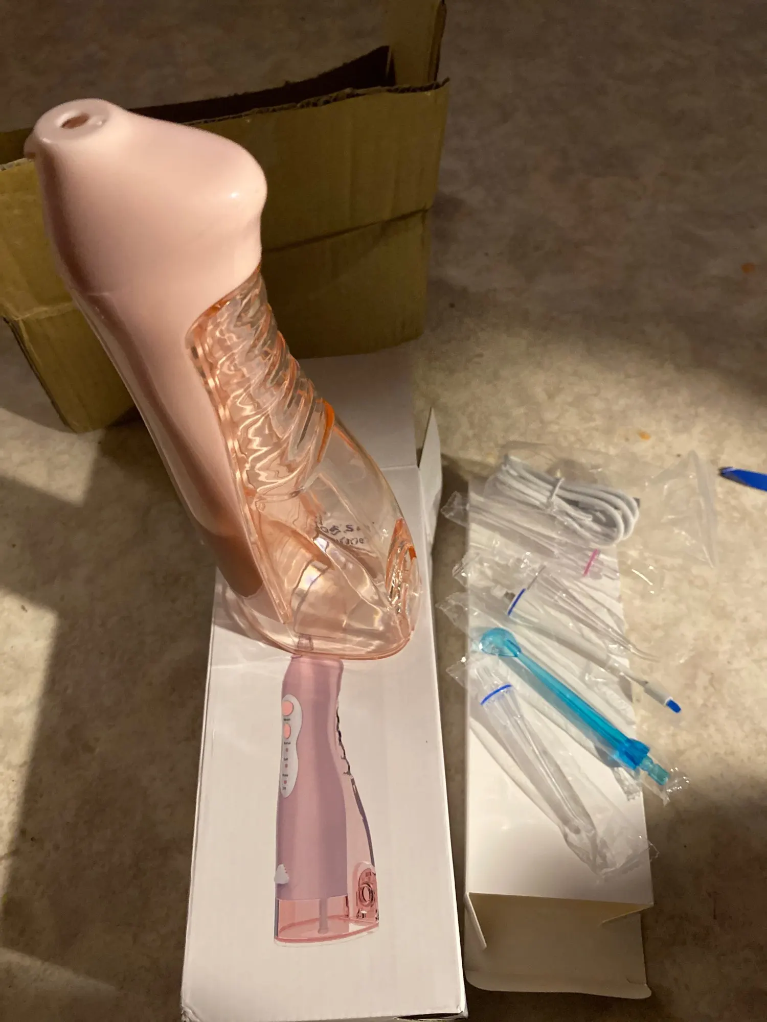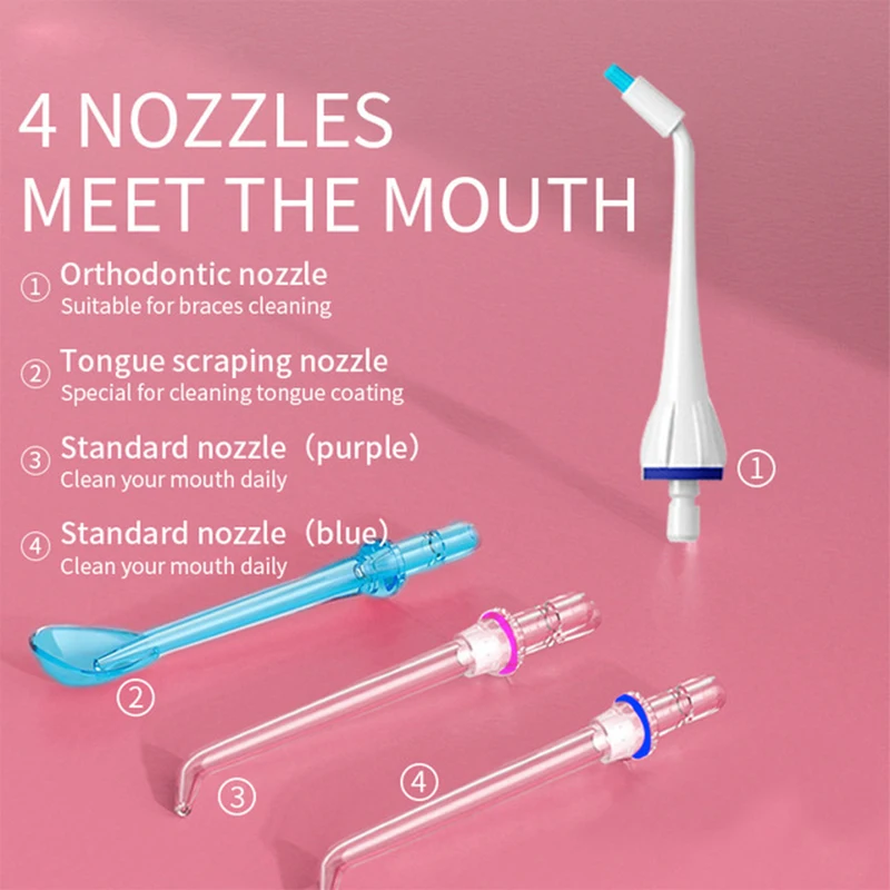 1 x ирригатор для полости рта (без насадок)4 сменных насадки1 x usb-кабель для зарядки (адаптер питания не входит в комплект)Руководство по эксплуатации-1 шт.1 x коробка для посылка