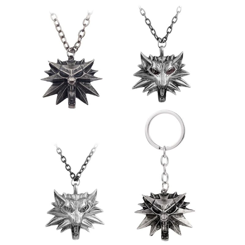 Мужской кулон в виде головы волка из цинкового сплава с цепочкой