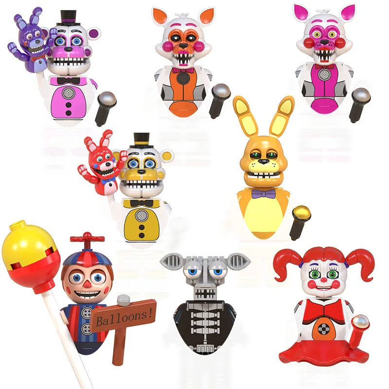 FNAF пять ночей у медведя мини-кукла экшн-фигурка игровая игрушка Бонни и Чика Foxy надувной шар мальчик лолбит строительный блок кирпич