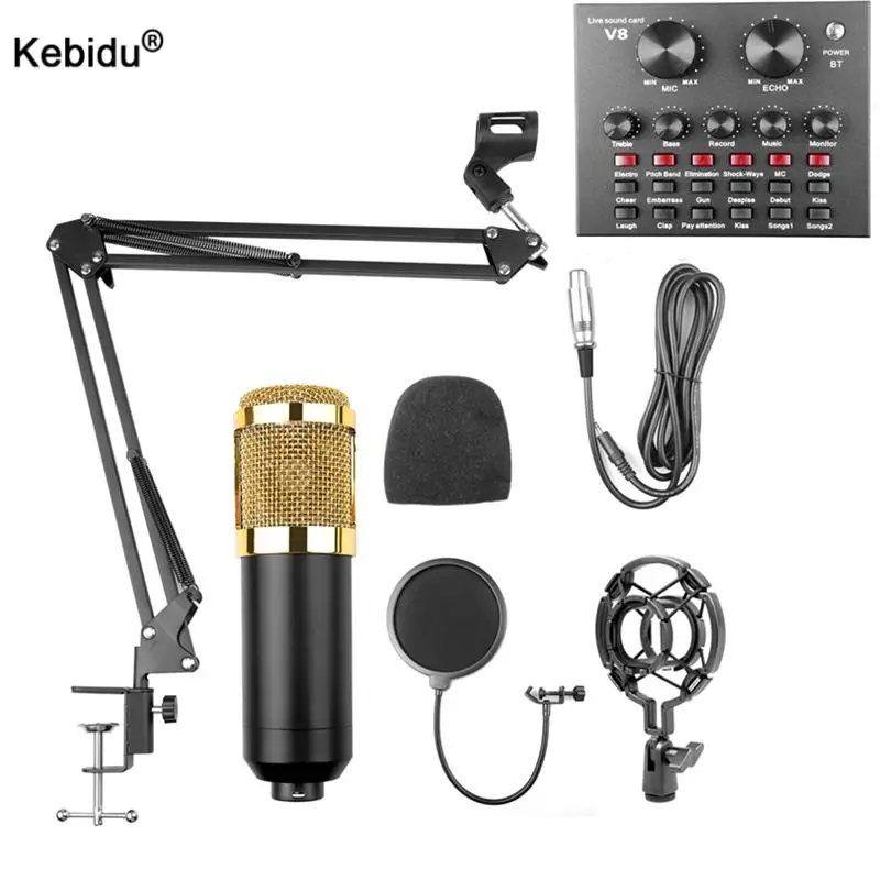 Конденсаторный микрофон Kebidu, беспроводной Bluetooth для прямой трансляции с V8 звуковой картой для компьютерной записи, пения