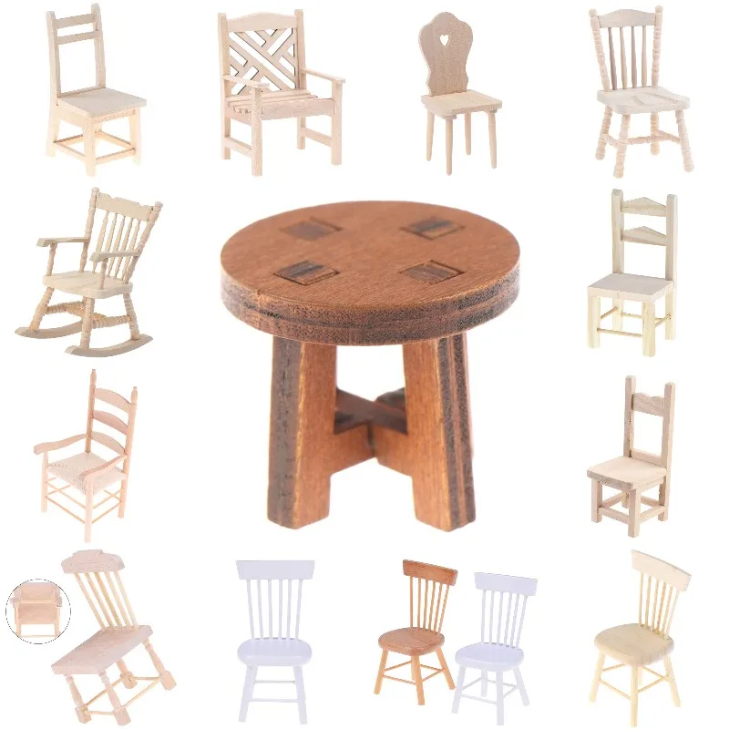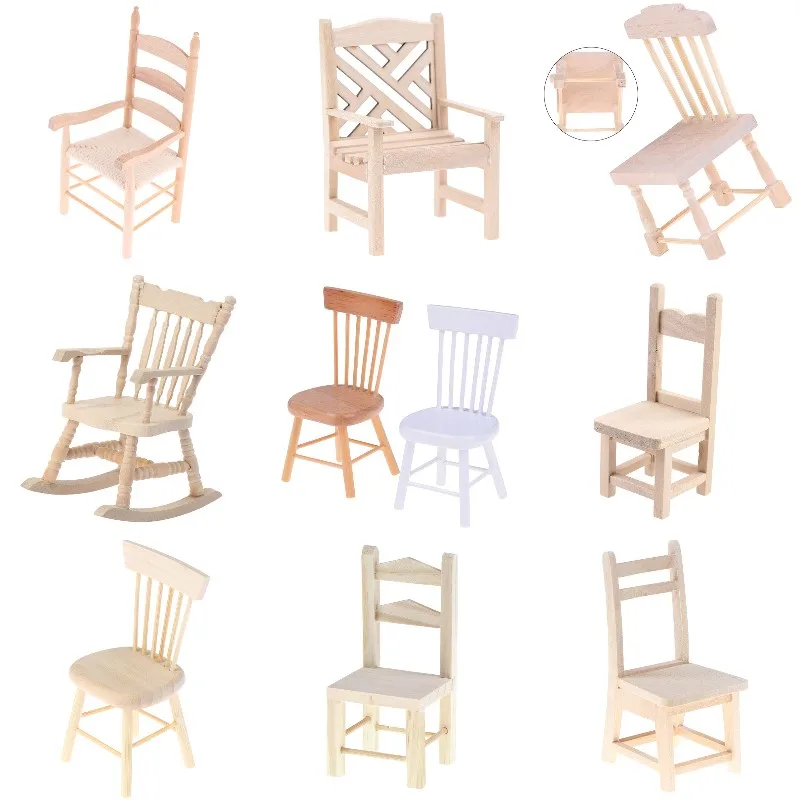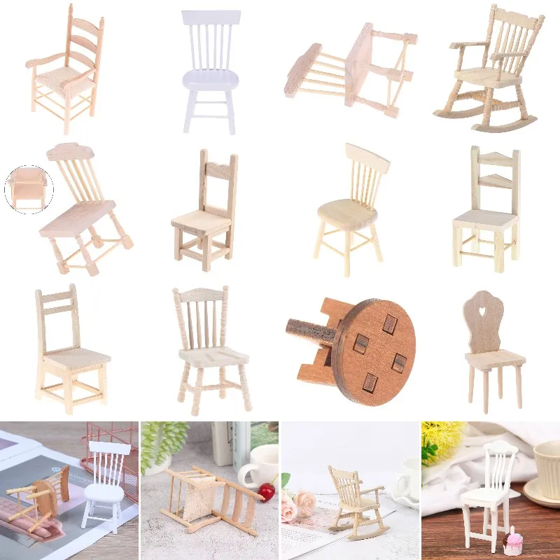 Модель деревянного стула 1:12 дюймов, кухонный стул, стул для ресторана, детская игрушка для ролевых игр, домашний декор для кукольного домика