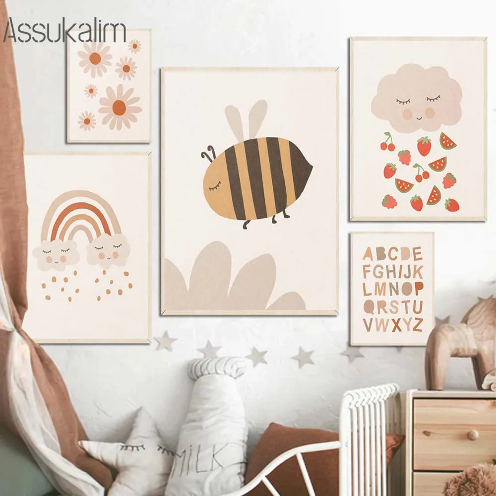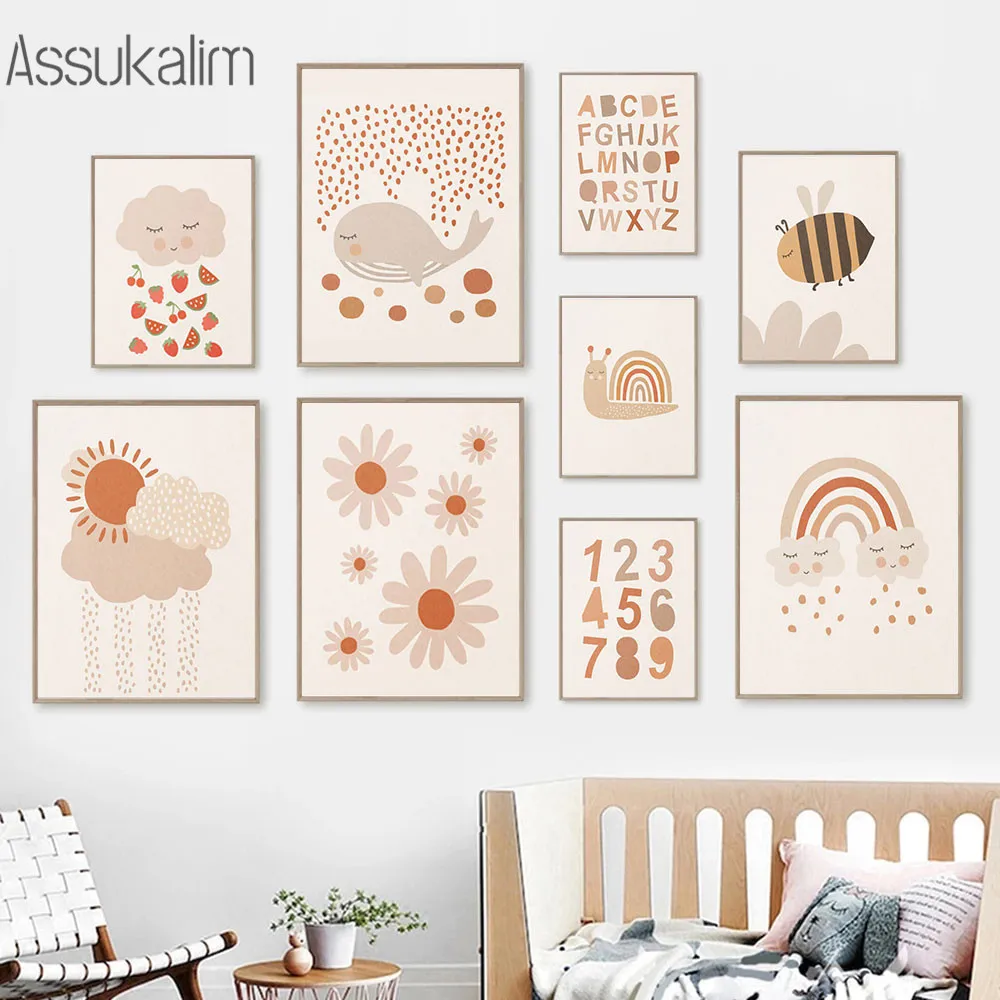 Настенные плакаты для детской комнаты, картины с алфавитом, солнце,...