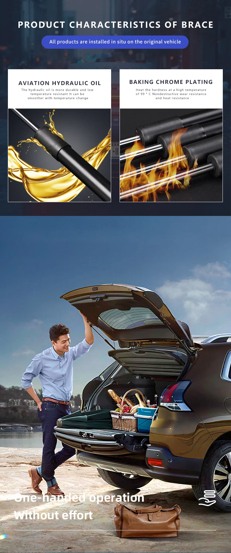 -100% абсолютно новый. Высокое качество!-Простота установки с помощью простых ручных инструментов.-Его поверхность более гладкая и устойчива к коррозии.-Блок цилиндров изготовлен из утолщенной высокоточной стальной трубы, которая обладает очень высоким сопротивлением давлению и не легко деформируется.-Используйте высококачественные уплотнения, длительный срок службы.-Когда мы открываем багажник, он выступает в качестве буфера, который является более трудоемким, более удобным и повышает комфорт использования.