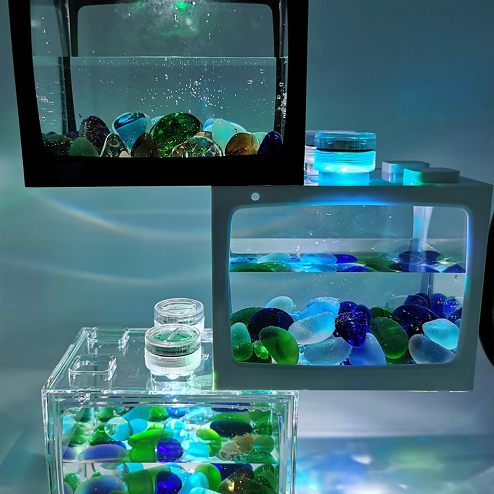 Креативный мини-аквариум для рептилий, светодиодный световой короб для домашних животных, Штабелируемый аквариумный цилиндр, ландшафтный морской рептилий, украшение для дома и офиса