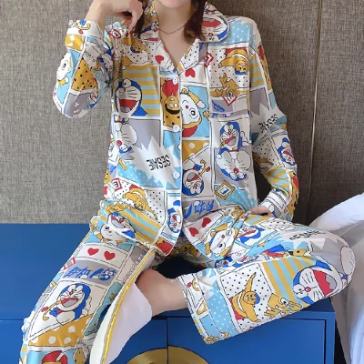 Весенний женский пижамный комплект из молочного шелка ночная рубашк...