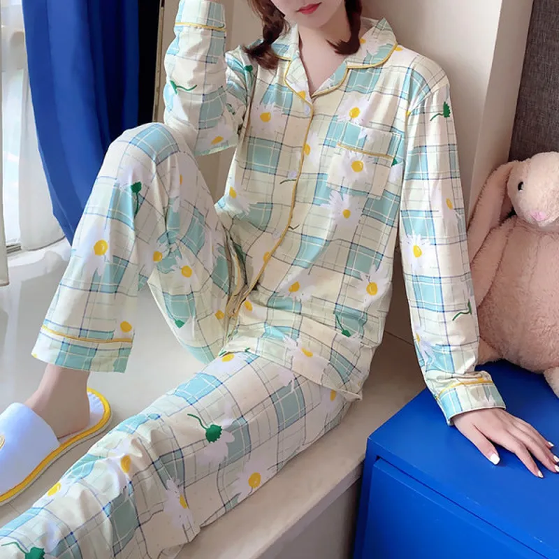 Пижамный комплект в клетку в Корейском стиле, домашняя одежда для ж...