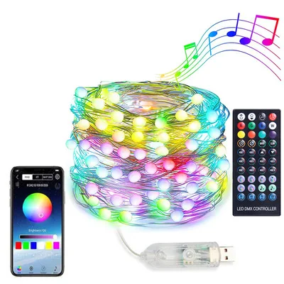 100светодиодных смарт-гирлянд, USB, Bluetooth, рождественские мерца...