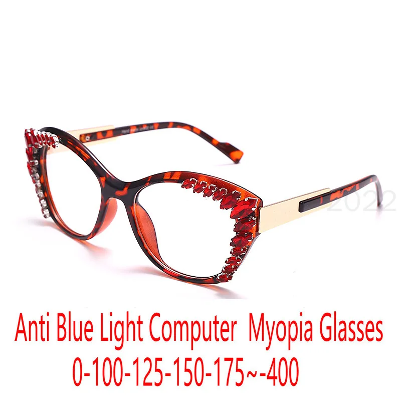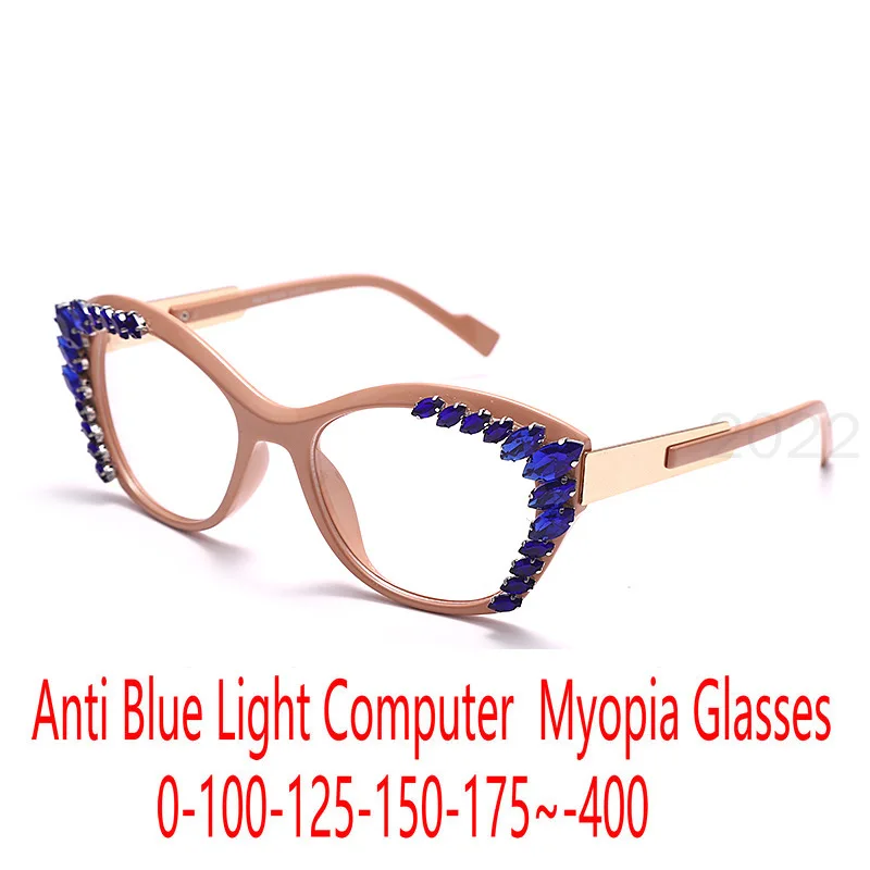 Очки Стразы кошачий глаз для близорукости женские модные очки с защитой от сисветильник компьютерные очки с диоптриями FML