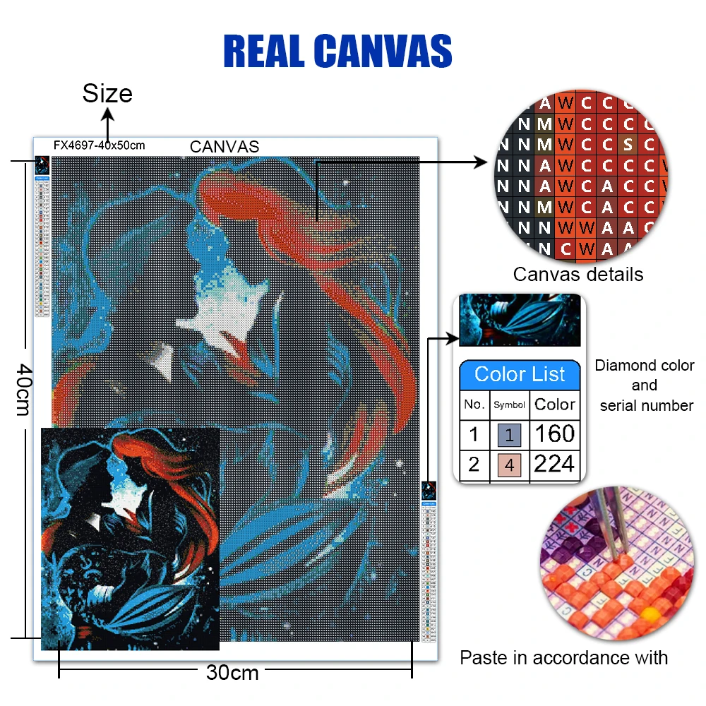 Алмазная 5D картина с изображением Феи русалки принцессы и принца, сделай сам, мультяшная фантазия, вышивка крестиком Стразы