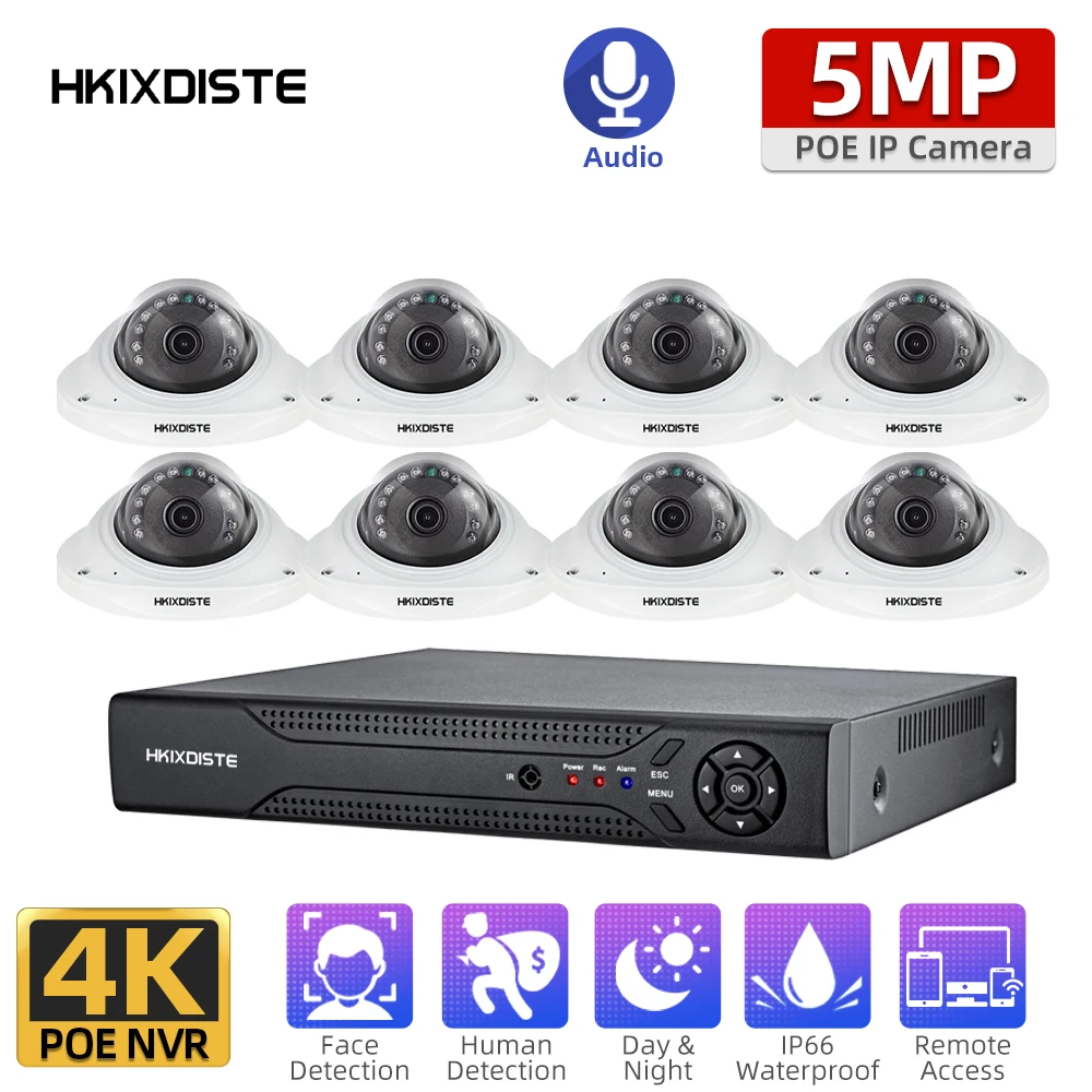 5 МП POE камера безопасности набор купольная черная наружная Водонепроницаемая аудио запись CCTV камера видеонаблюдения камера система набор 8 каналов NVR