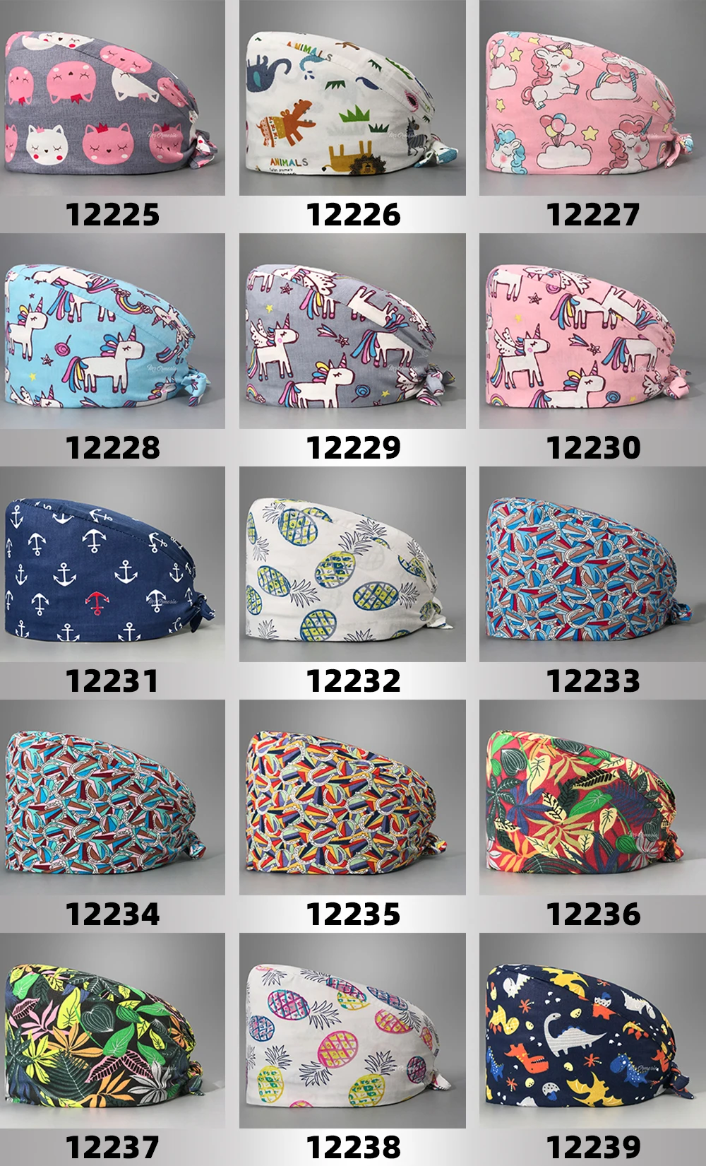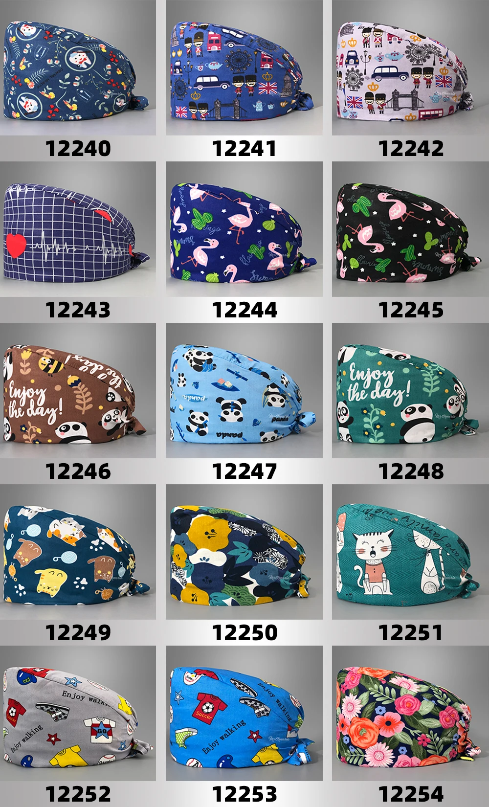 Шапка для медсестры с цветочным узором, регулируемая шапка с разным...