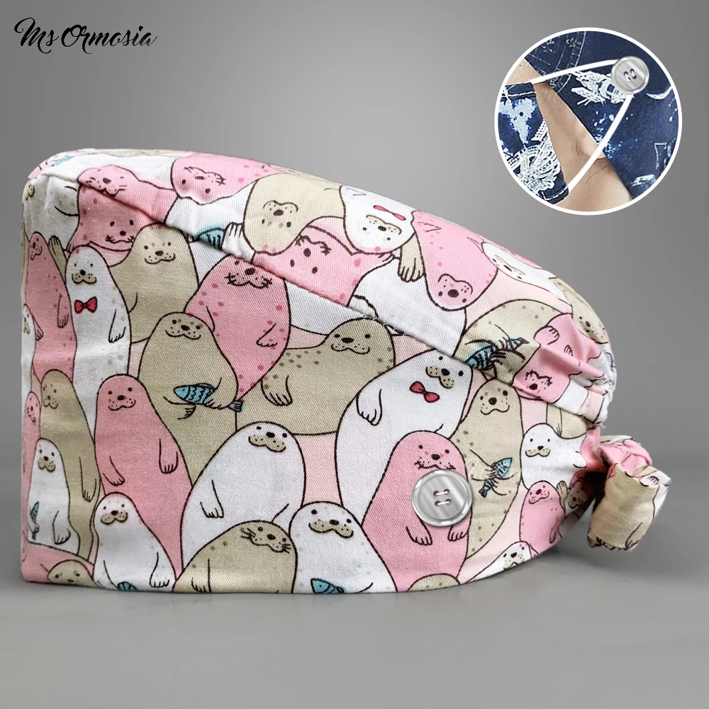 Шапочка-скраб с мультяшным принтом, хирургические шапочки для женщи...