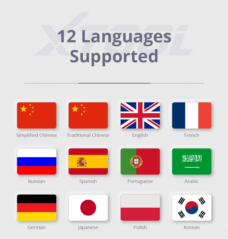1. Доступны различные языки: английский, французский, испанский, немецкий, португальский, польский, русский, арабский, японский, корейский