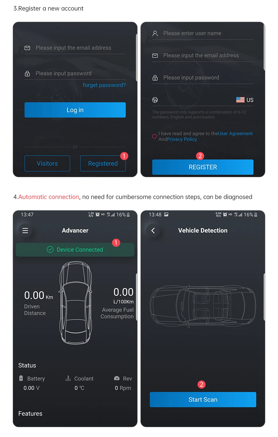 3. Автоматическое определение автомобиля, считывание кода ошибки автомобиля,