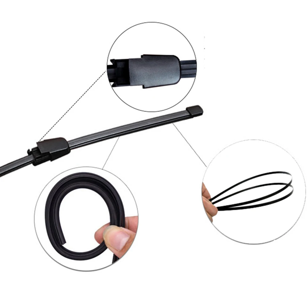 Характеристика:Под заказ, прямая замена старых.1 миллион раз вытирания. Температурный допуск: + 158F до-40F (+ 70C до-40C)Память натяжения обеспечивает равномерное давление вдоль всего лезвияСпециально Смешанная резина обеспечивает превосходную гладкость, чистоту, бесщеточный очистительАэродинамическая конструкция значительно уменьшает сопротивление, шум и ветерПредотвращает образование льда и снега от воздействия металлических/пластиковых компонентов