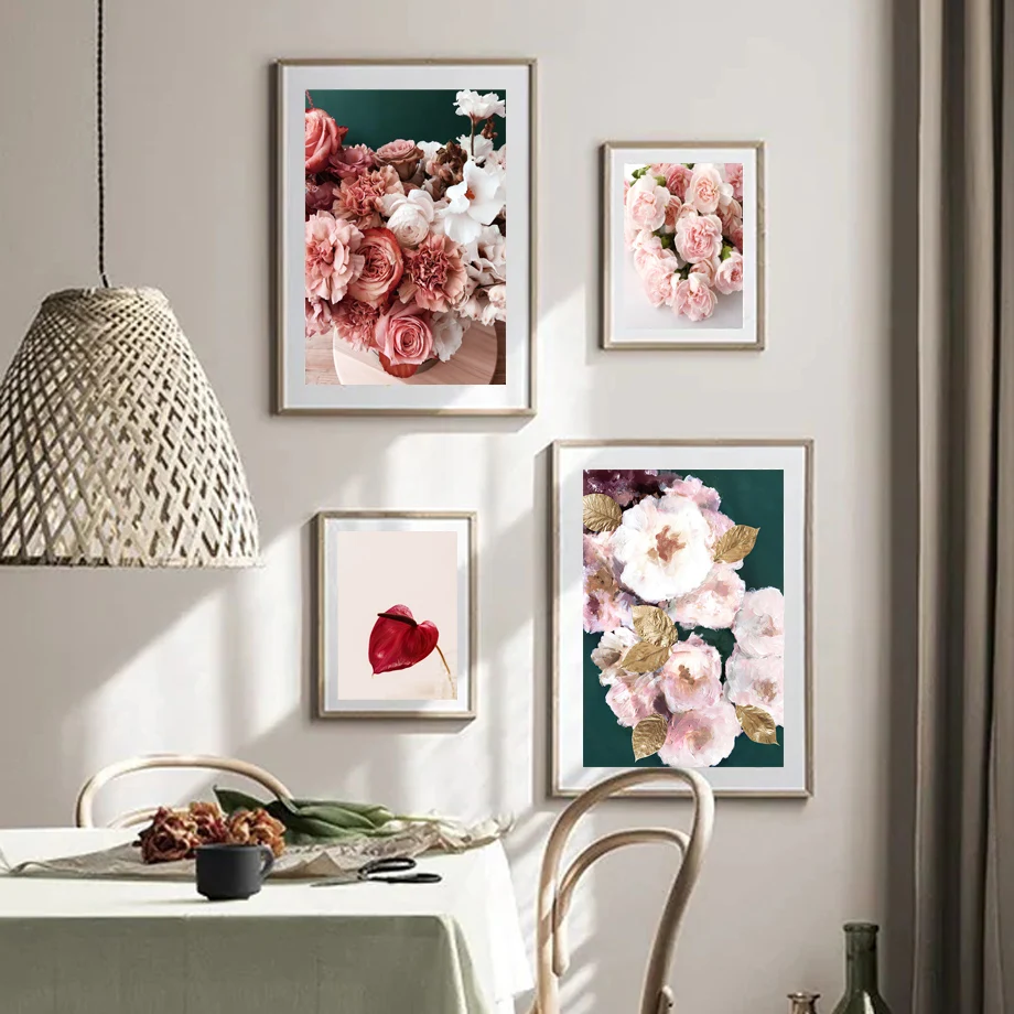 Розовая роза пиона антуриум бутон Орхидея Лилия цветы скандинавские стены Искусство Холст Картина, печатный плакат картинки для декора гостиной