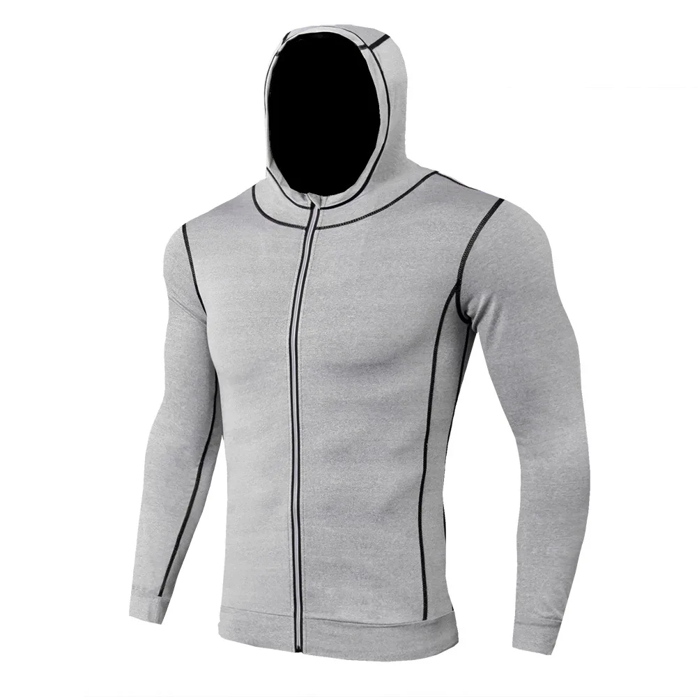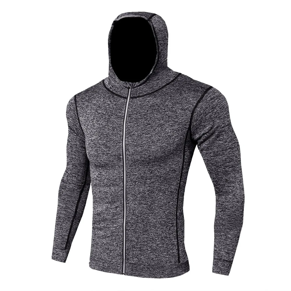 Мужская компрессионная куртка с капюшоном, на молнии, с длинным рукавом, Быстросохнущий Спортивный свитшот для фитнеса и тренировок на открытом воздухе, худи, пальто