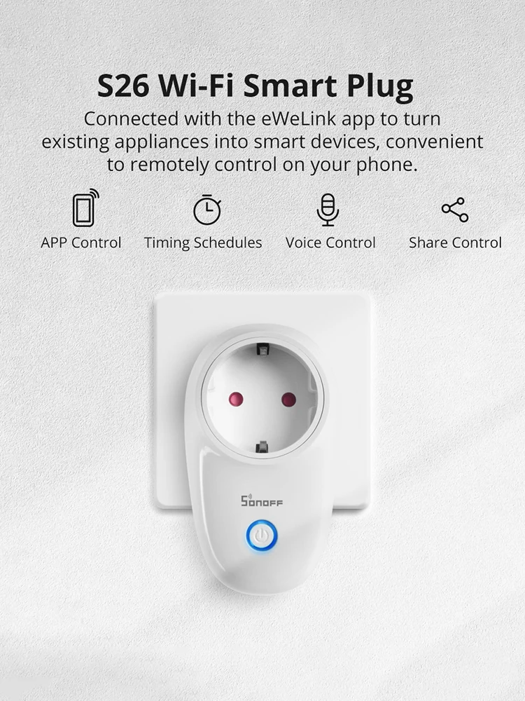 S26R2-это обновленная версия S26 со стандартом ЕС (Type-F)/UK/BR, которая обеспечивает самый простой способ автоматизации ваших устройств и приборов.