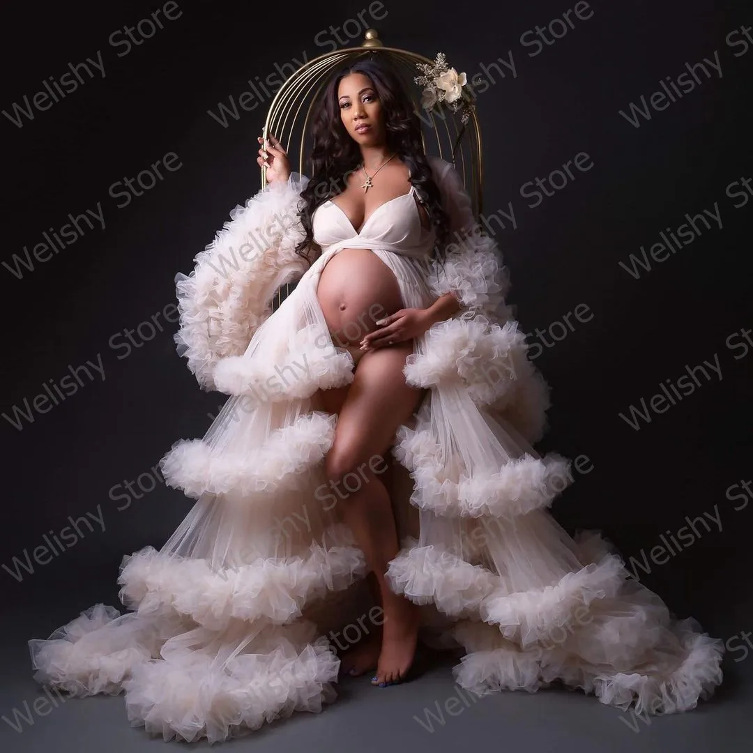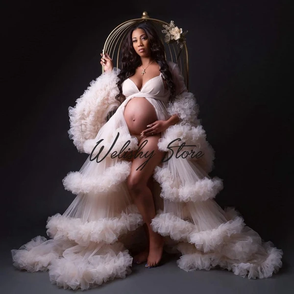 Высококачественный красивый тюлевый халат для беременных для фотосъ...